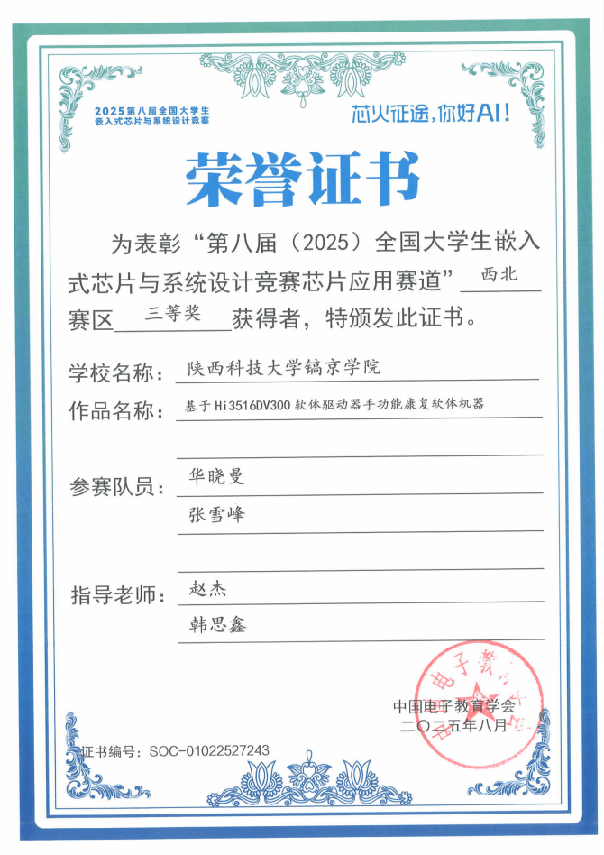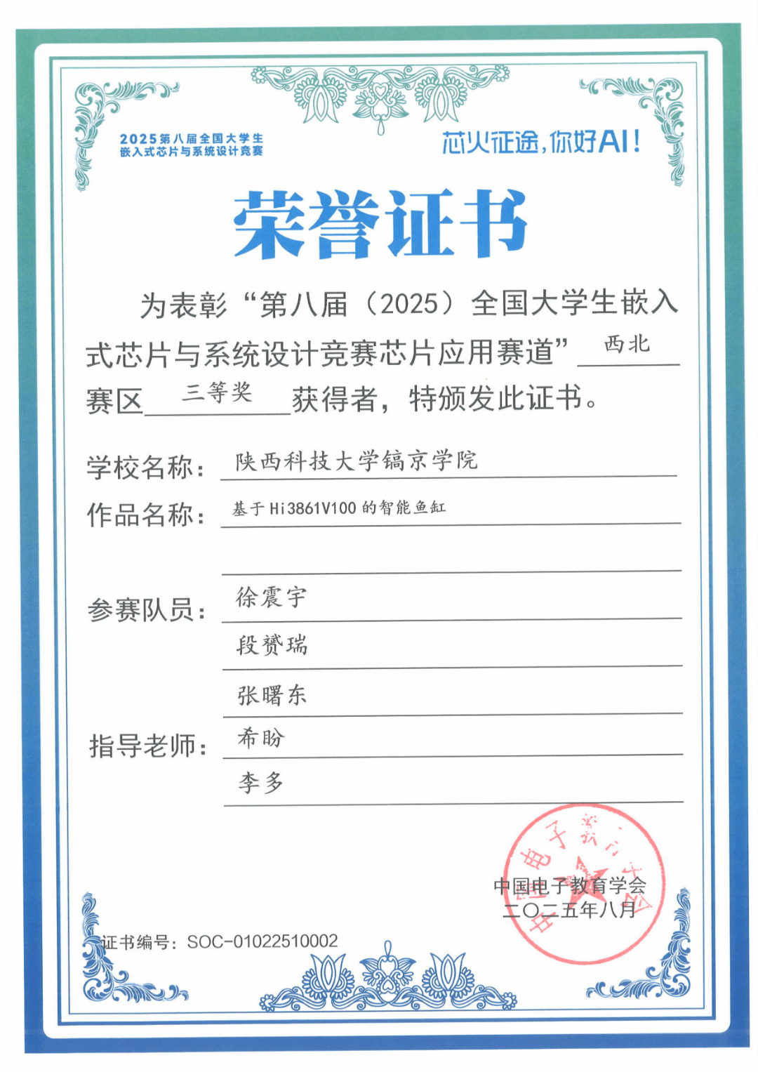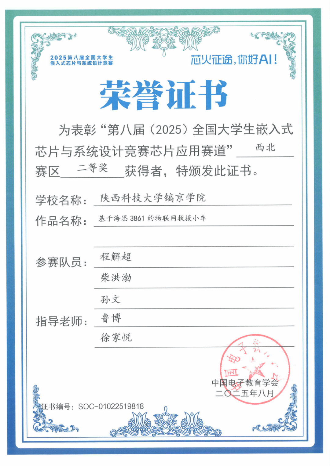 第八届(2025)全国大学生嵌入式芯片与系统设计竞赛全国总决赛在南京圆满落幕。陕西科技大学镐京学院电信工程学院学子历经西北赛区激烈角逐与全国总决赛巅峰对决,最终斩获国家三等奖1项、西北赛区二等奖3项、西北赛区三等奖3项的优异成绩,用技术实力彰显了学院应用型人才培养的扎实成效。