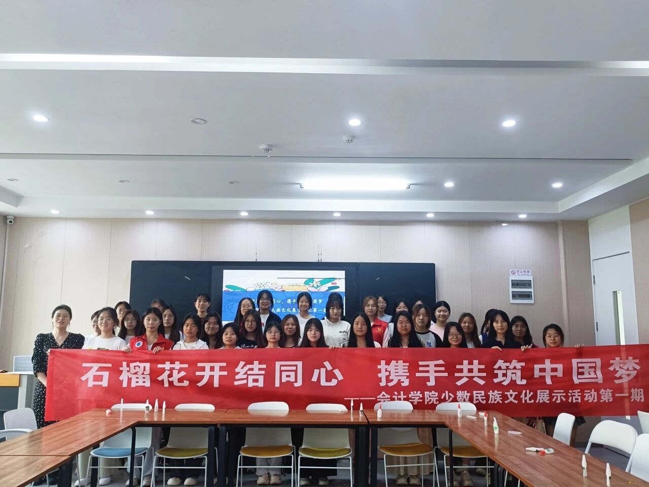 为铸牢中华民族共同体意识,深化民族团结教育,会计学院以“石榴花开结同心,携手共筑中国梦”为主题,于2025年5月21日下午4:00在实验楼312成功举办少数民族文化展示活动第一期。通过白族文化视频展播、深度研讨与编织包手工DIY体验,师生们沉浸式感受了白族文化的独特魅力,在指尖与心灵的互动中,奏响民族团结的和谐乐章!